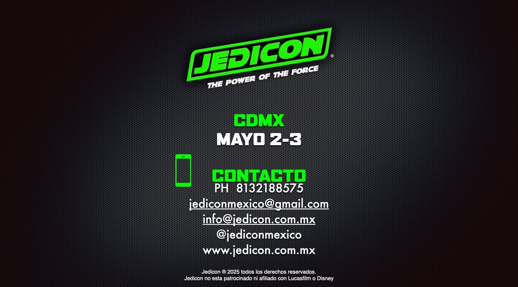© 2025. Jedicon es una marca registrada. Jedicon no esta afiliada ni patrocinada por Lucasfilm, Disney ni sus compañías filiales.