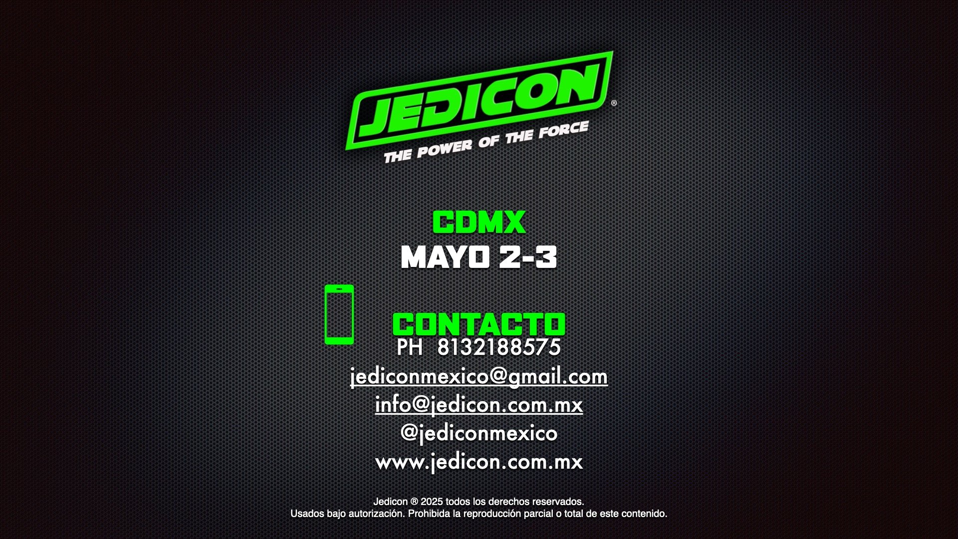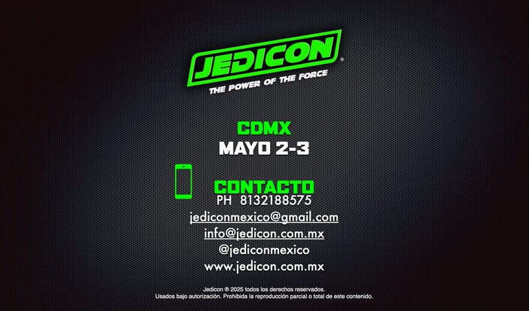 © 2025. Jedicon es una marca registrada. Jedicon no esta afiliada ni patrocinada por Lucasfilm, Disney ni sus compañías filiales.