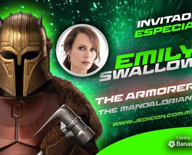 Emily interpreta a la armera en la serie de Disney+ El Mandalorian. Emily estará presente ambos días y por primera vez en México algo que los fans llevaban pidiendo desde la Primera convención de Star Wars. Emily viajará con su vestuario del Mandalorian y habrá fotos con ella en su vestuario original, así como le escuchan! No te pierdas de esta gran experiencia este 2 y 3 de mayo en Jedicon . This is the way!